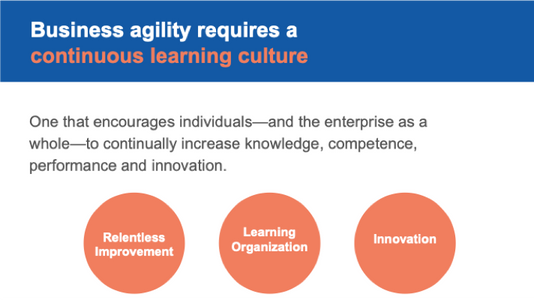 Business agility represents an enterprises’ ability to rapidly and continuously respond to market changes and emerging business models.